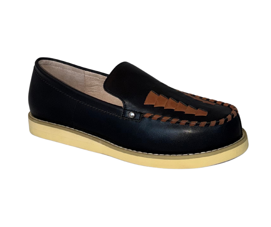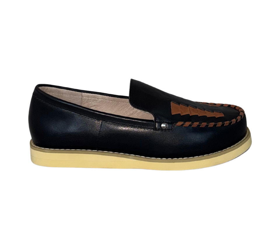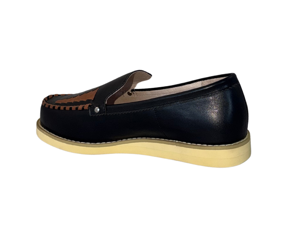 Introducing the Ophelia ladies loafer in timeless black leather – an exact reproduction of an original vintage mid-century pair, faithfully recreated to honour classic craftsmanship.